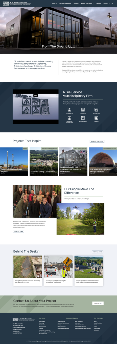 C.T. Male Associates is a multidisciplinary engineering, architecture, surveying, and environmental consulting firm with over 100 years of experience delivering innovative, sustainable solutions for public and private clients across the Northeast. Their commitment to technical excellence and client-focused collaboration makes them a respected leader in the A/E industry, and redesigning their digital presence allowed us to reflect that legacy with a modern, intuitive, and engaging user experience.